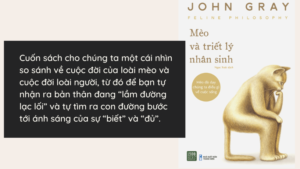 Quyển sách Mèo và triết lý nhân sinh của tác giả John Gray, do nhà xuất bản Thanh niên thay mặt tác giả mang món quà đến những người yêu mèo, hoặc những độc giả dừng chân lại nơi đây để tìm hiểu về triết lý nhân sinh, những thông điệp được gửi gắm trong quyển sách. John Gray mượn nhân vật chính là mèo để nói về cái nhìn so sánh giữa hai cuộc đời, loài mèo và con người. Trong khi lối sống loài mèo là bản chất hài lòng với cuộc đời thì trái lại, con người luôn đấu tranh và tìm kiếm một lối sống phức tạp. Nhưng khi xem gần đến trang cuối của quyển sách, chúng ta mới nhận ra mục đích của tác giả chính là muốn dẫn dắt mỗi người qua từng chương sẽ bước đi đúng đường, và hướng đến một cách sống biết đủ là hạnh phúc.